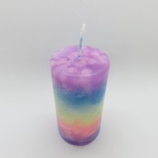 パープル、ブルー、イエロー、ヘリオトロープのグラデーションキャンドルです。