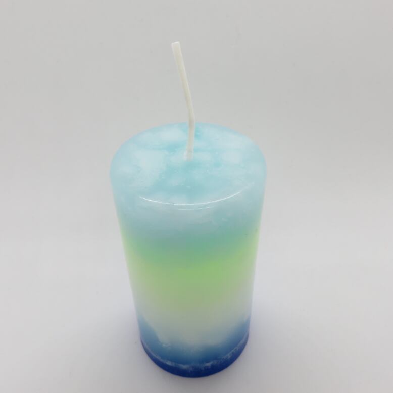 水色、蛍光みの淡い黄緑の薄柳、ブルーのグラデーションキャンドルです。
