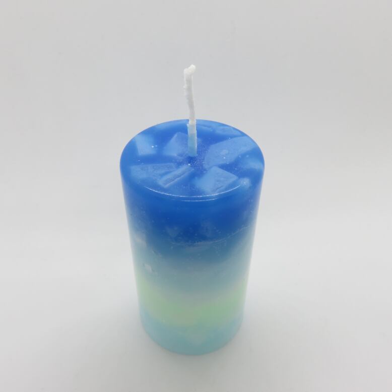 青、淡い緑の白緑、水色のグラデーションキャンドルです。