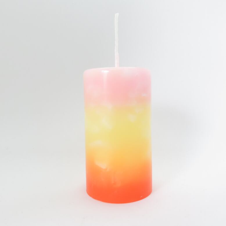 ベビーピンク、クリームイエロー、少し蛍光みのあるクロームオレンジのグラデーションキャンドルです。