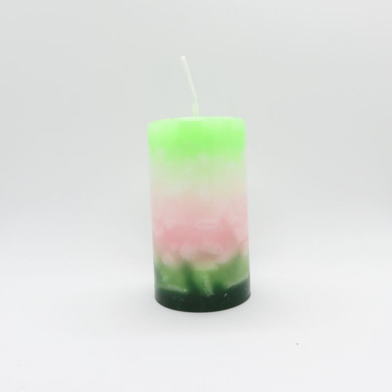 蛍光みのあるアップルグリーン、ベビーピンク、深緑のグラデーションキャンドルです。