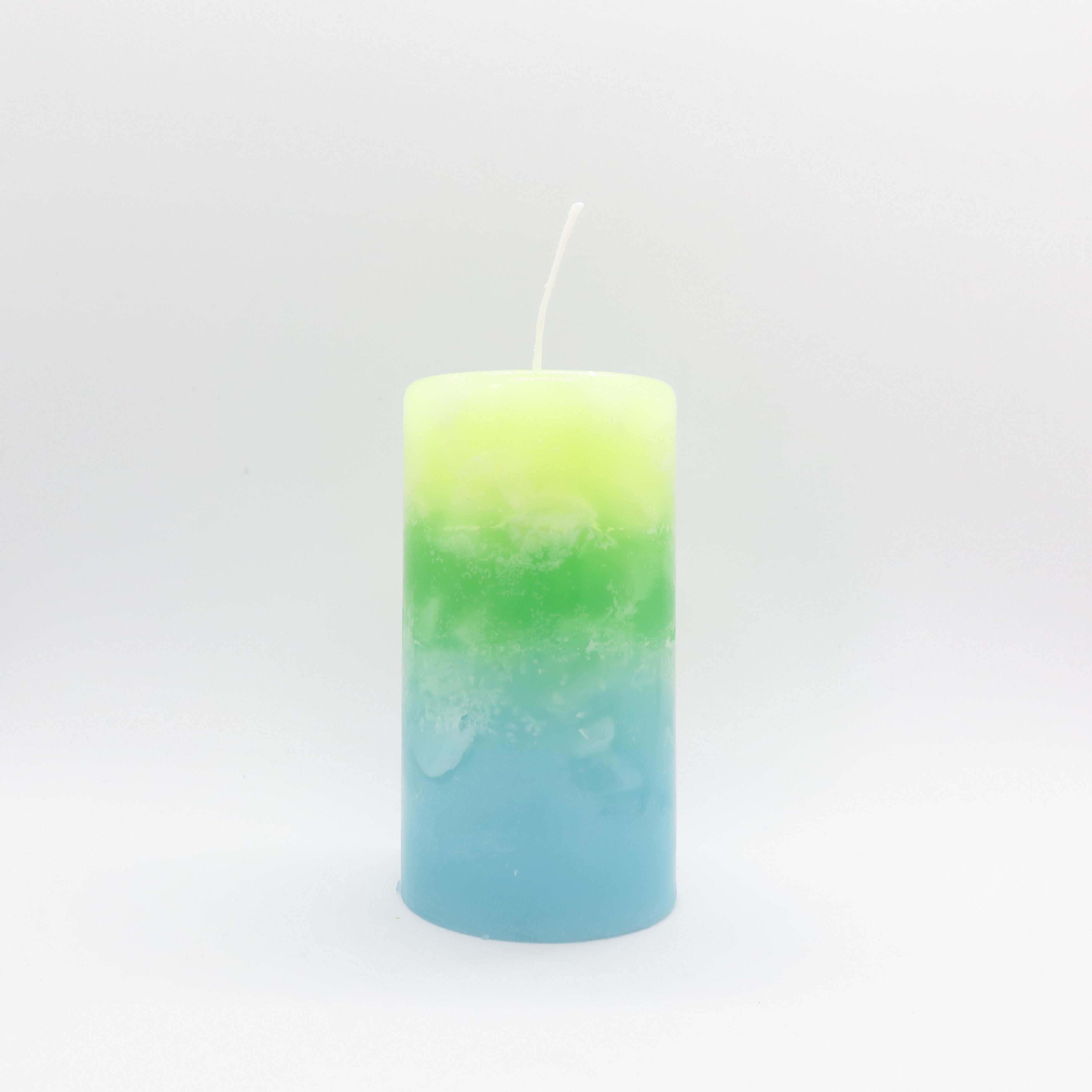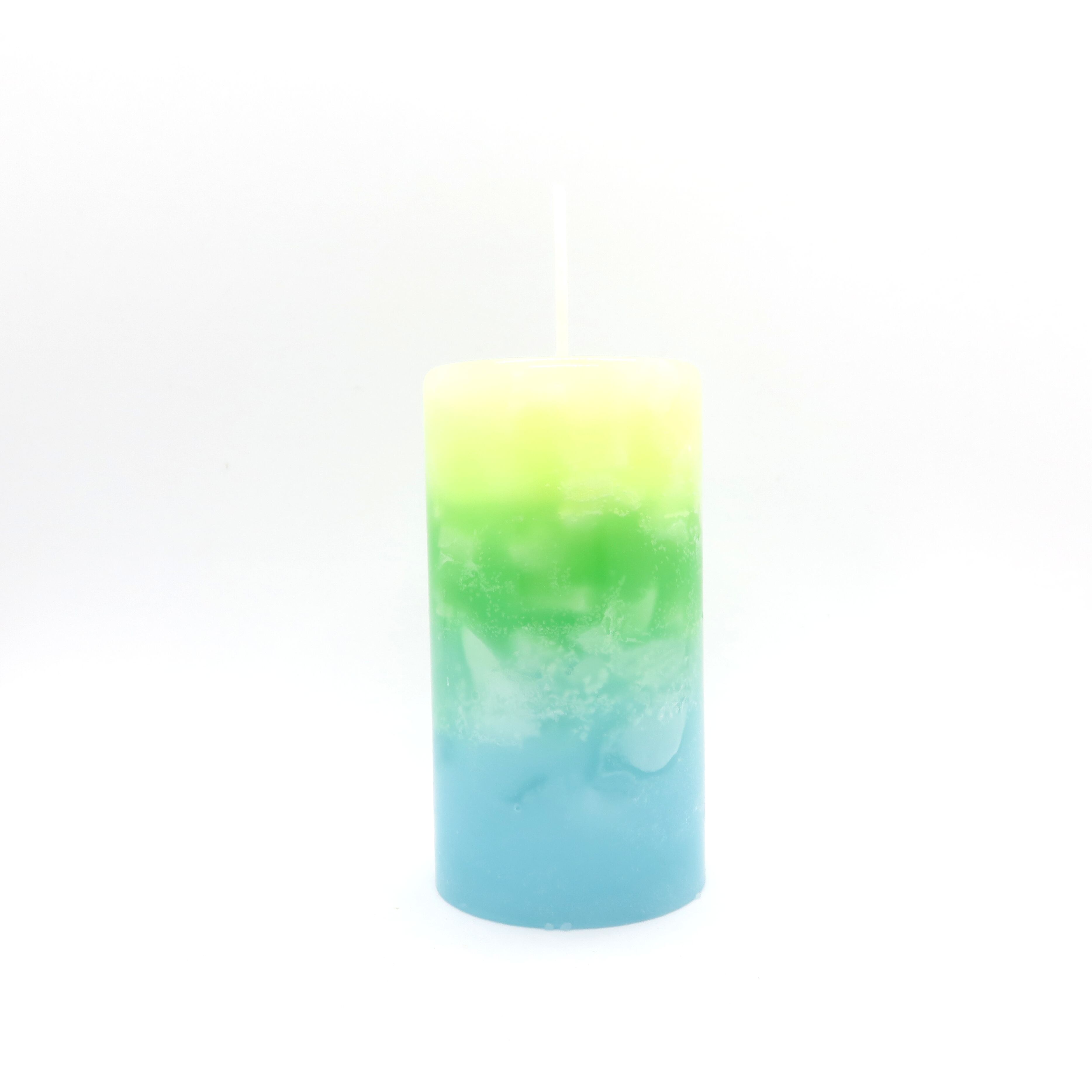 きはだいろ、緑、ホライズンブルーのグラデーションキャンドルです。