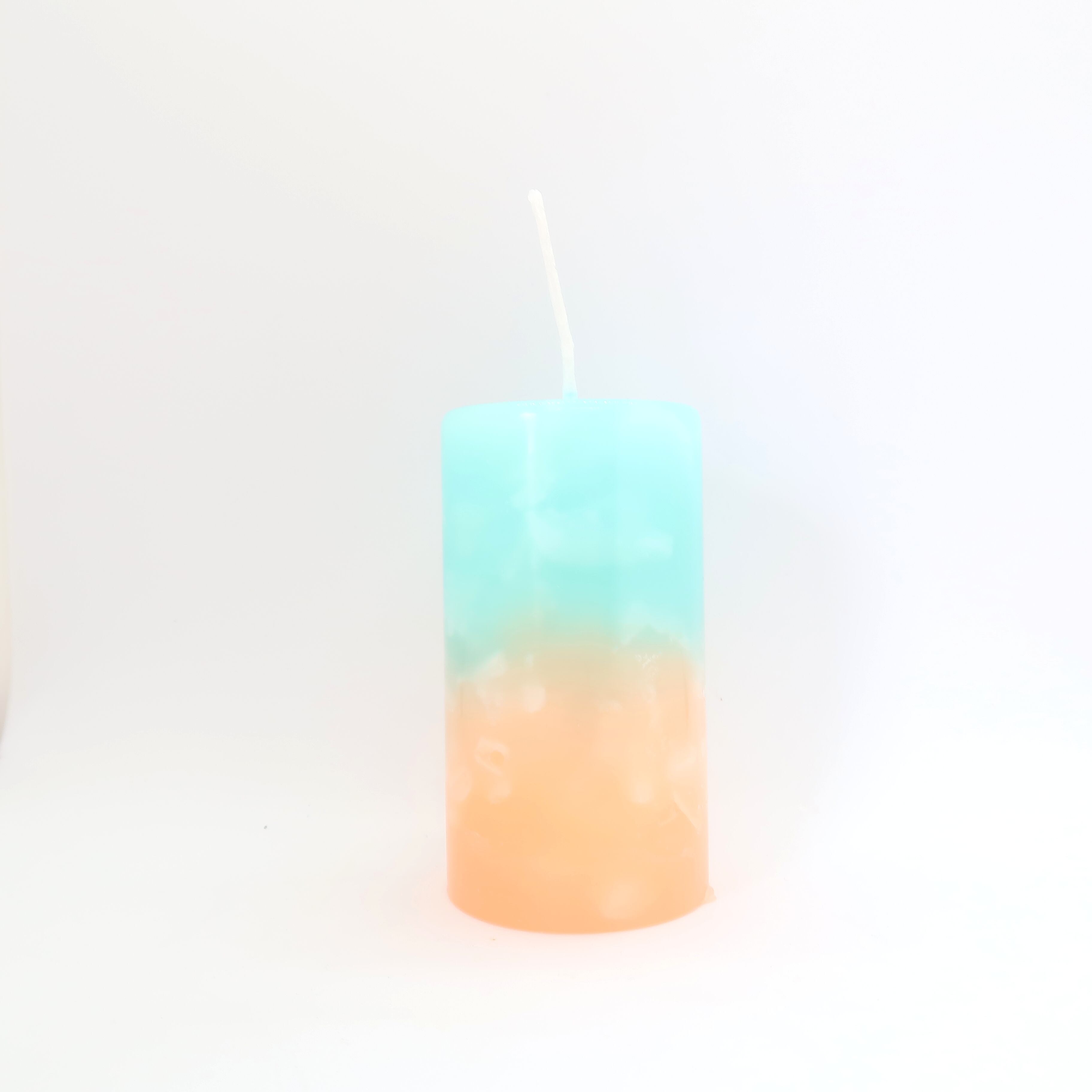 淡い青緑色をした白群とオレンジ色のアプリコットのグラデーションキャンドルです。